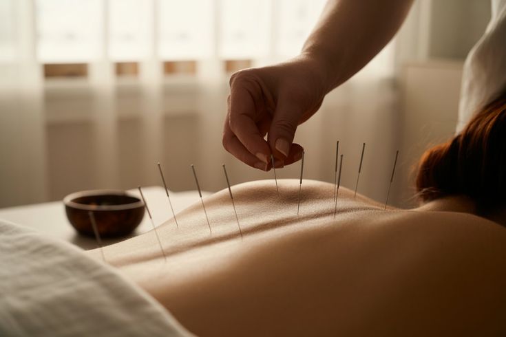 Deep relaxation therapy combining acupuncture and warm moxibustion to improve circulation and relieve pain.